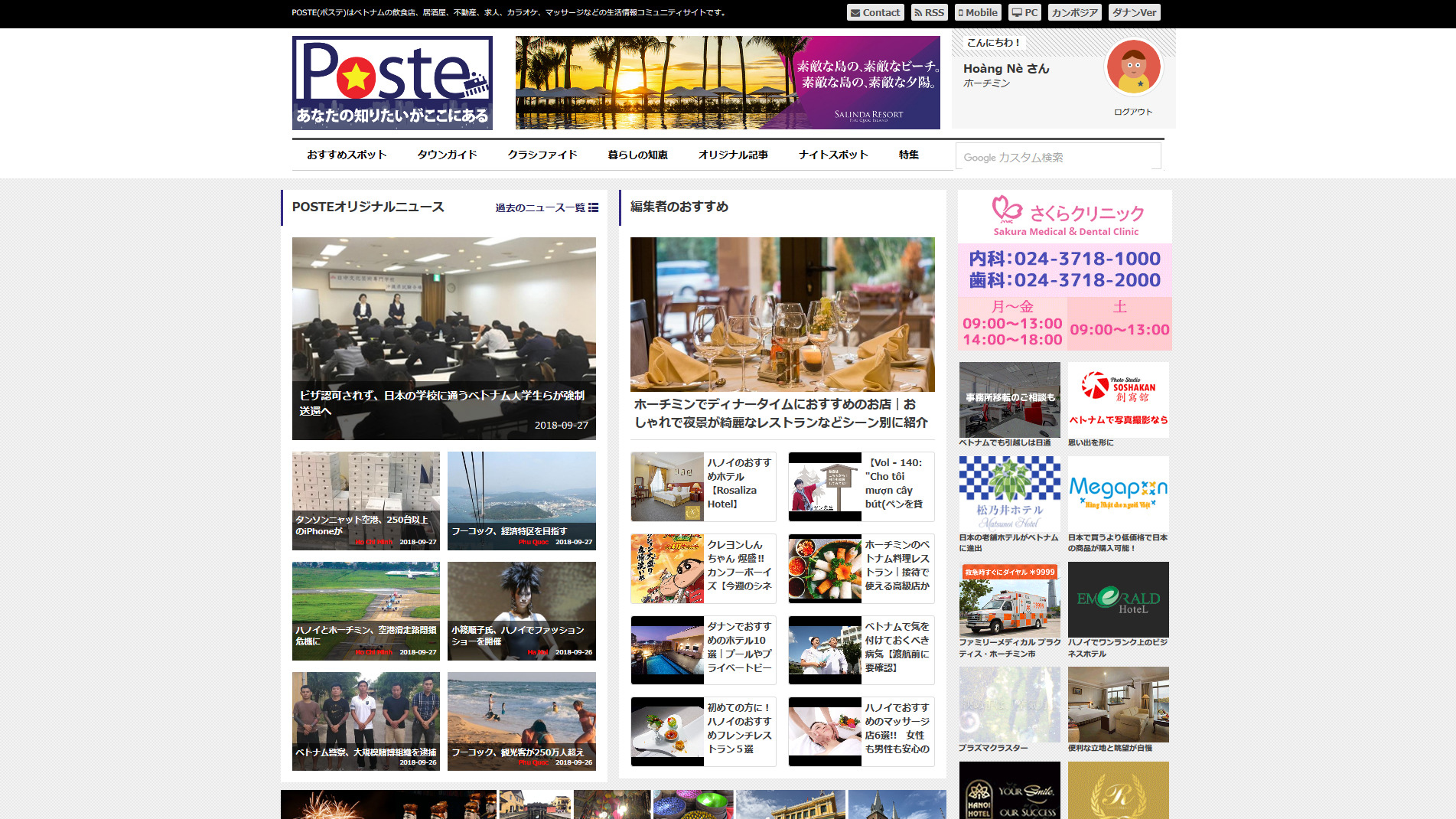 POSTEは2013年に誕生した日系生活情報コミュニティサイトです。ベトナムの現地ニュースやベトナムで生活するのに欠かせないで暮らしに役立つ情報を掲載掲載しています。 2018年現在、ベトナム在住日本人の約8割の方に毎月閲覧いただいています。