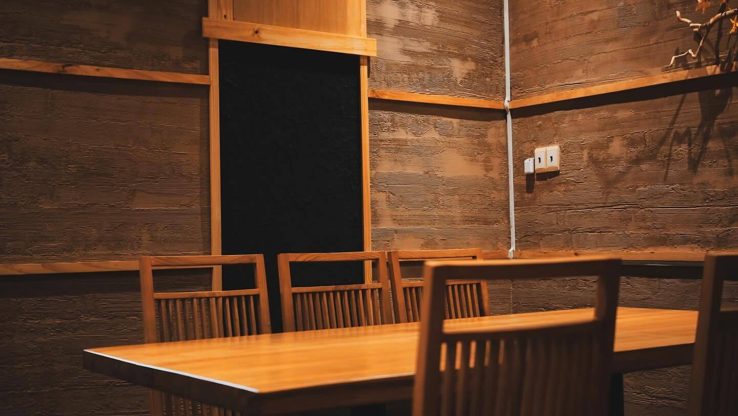 木目のカウンターが温かみを添える和モダンな店内には、職人の手さばきを間近で見られるカウンター10席と、最大6名まで利用できる個室を完備。