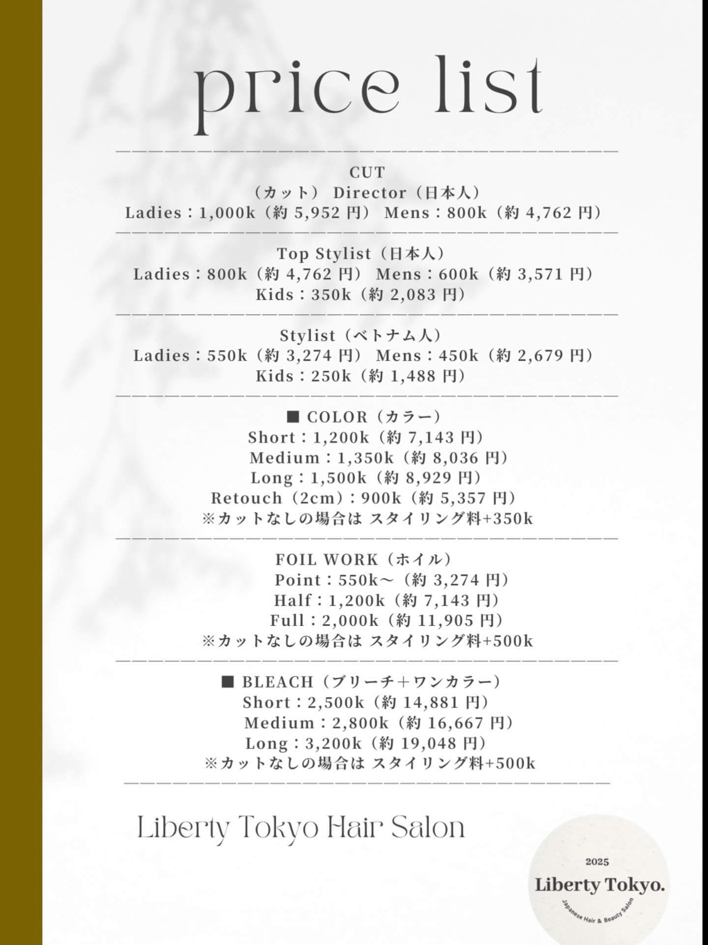 日本と同じ基準で、安心して髪を任せられる場所を探しているなら、リバティ・トウキョウは一度訪れておきたい一軒です。