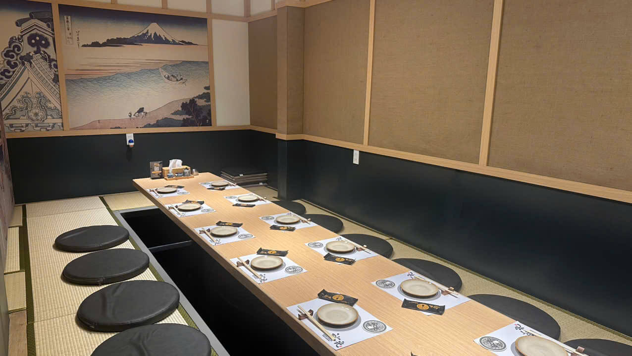 店内1階はカウンター席をメインに、2階にはテーブル席と掘りごたつ式の個室(2部屋・最大18名)があります。