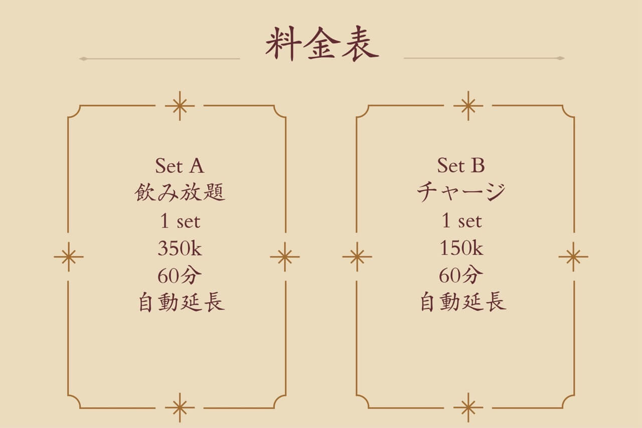 軽く一杯楽しみたい方には、60分15万ドンのチャージ制のSet Bがあり、いずれのプランも時間終了後は自動延長となります。