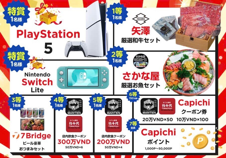 今年の冬は「おいしい × 当たる」でさらに楽しく! Capichiで注文するだけで、豪華賞品が当たるチャンス! ハノイ在住の皆様はぜひ挑戦してみてください♪