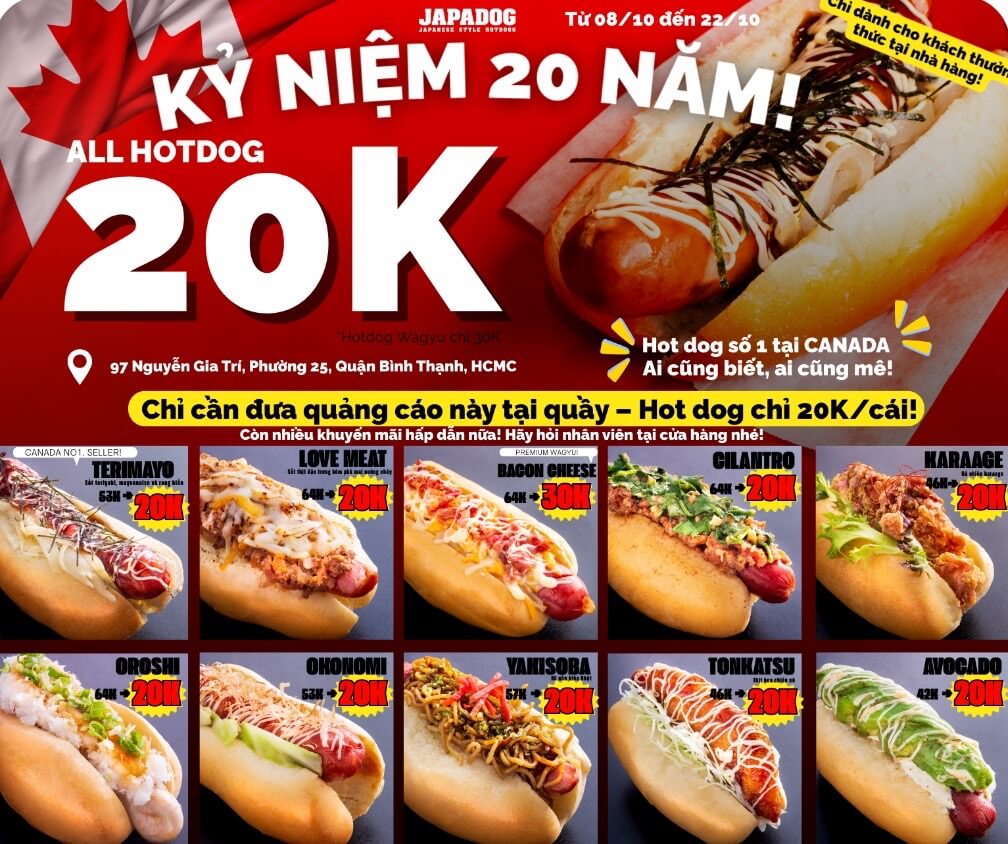 カナダ発の日系ホットドッグ専門店「JAPADOG(ジャパドッグ)」が開業20周年を迎え、ホーチミンのベトナム1号店でも特別プロモーションが実施されます。