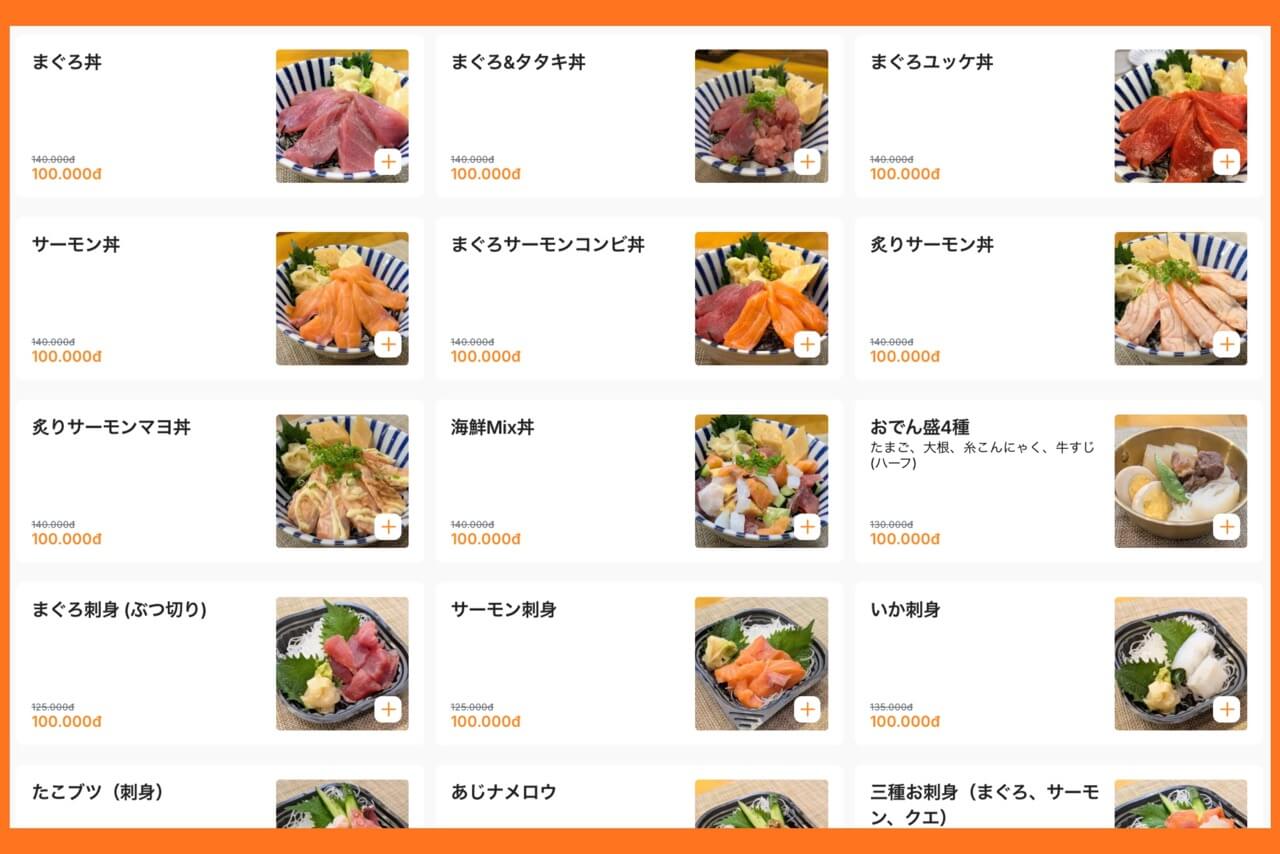 海鮮丼・お刺身・おでん盛りなど、通常は14〜16万ドン相当の人気メニューが、 今だけ10万ドンという驚きの内容。年末の自宅での食事、晩酌にぴったりなキャンペーンです!!